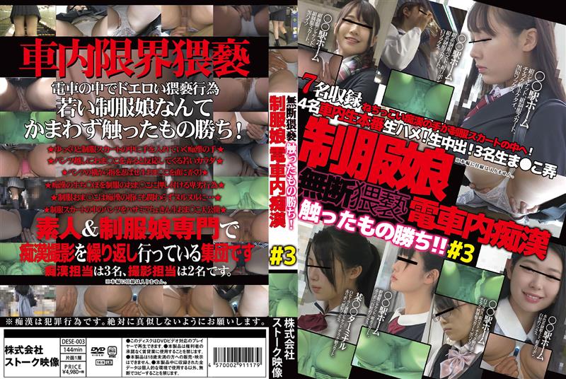 車内限界猥褻!電車の中でドエロい猥褻行為、若い制服娘なんてかまわず触ったもの勝ち!!ゆっくりと制服スカートの中に手を入れていく痴漢の手。パンツ越におま○こを弄ると反応してくる若いカラダ。痴漢の生ち○ぽを制服のおま○こに押し付ける卑劣行為。素人&制服娘専門で痴漢撮影を繰り返し行っている集団です。